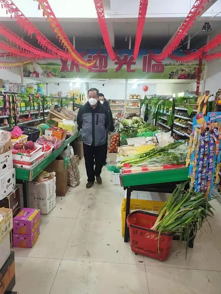 指導組一行來到在金城小區超市,了解蔬菜水果等商品供應情況,向超市工作人員詳細詢問了貨源供給、商品儲備等與廣大居民生活息息相關的民生問題,叮囑項目經理范宇昆,在疫情防控階段,必要時開啟運輸綠色通道,全力以赴做好居民生活必需品的后勤保障工作。