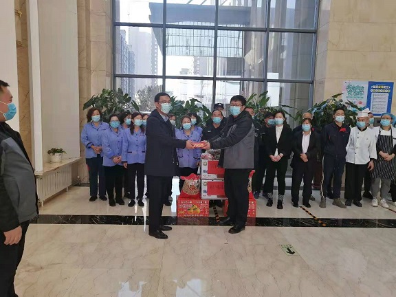 2月10日上午,城發公司副總經理、物業公司董事長趙永強,物業公司黨支部書記娜仁、經理史濤等一行走訪慰問了春節前夕仍堅守在工作一線的員工們,為他們送去節日慰問品,并致以真摯的節日祝福