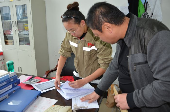 紀(jì)檢監(jiān)察部負(fù)責(zé)人核對金橋黨群工作情況。張亞利攝