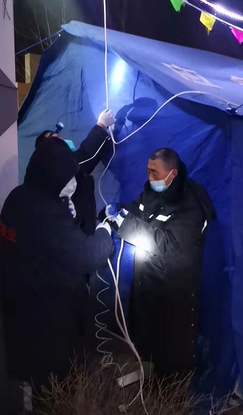 在接到社區需要建立臨時核酸采樣點的通知,物業公司組織人員協同社區立即著手協助搭建臨時核酸采樣點、接線以保障供電網絡正常使用。作為人口密度較大的小區,為使此次采樣工作有序地進行,避免居民聚集、防止交叉感染,及時拉好警戒線并粘貼"一米線"間隔反光條,實現采樣人員單向流動。