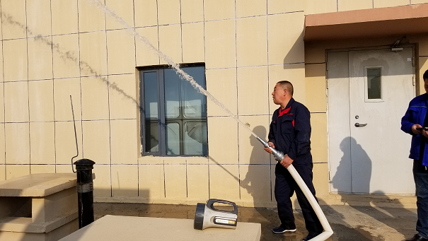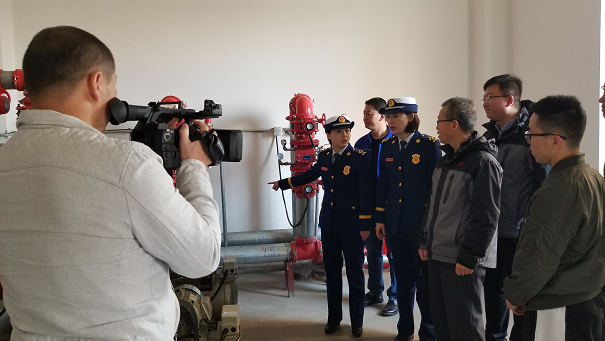 取景地點主要是有監控室、報警閥室和消防高位水箱間。在拍攝期間城發房地產公司工程處處長趙國棟和暖通專業工程師楊建剛詳細介紹了消防聯動控制器是如何監控火情后反饋信息,又是如何處理后續問題的運行程序以及高位水箱穩壓系統的工作原理。最后,在樓頂測試了消防給水系統的給水壓力是否達標。測試結果達到了10m充實水柱的標準。