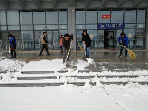 上午九點整,24名青年團員準時在城發(fā)客運公司站前廣場集合,對站前廣場上的積雪進行清掃。青年團員們不怕臟,不怕累,經(jīng)過近一個小時的認真清理,干凈整潔的站前廣場呈現(xiàn)在大家眼前。