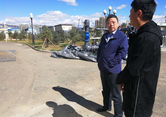 在財政廳東站景泰小區供熱管網項目收尾施工現場副經理任強向負責該項目的施工負責人詢問了施工的具體情況,對項目工作進展情況給予充分肯定。